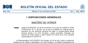 NUEVA INSTRUCCIÓN EN EL BOE SOBRE LA RESTRICCIÓN TEMPORAL DE LOS VIAJES NO ESENCIALES A LA UNIÓN EUROPEA