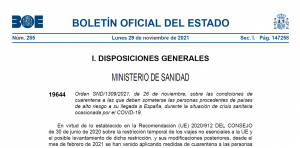 SANIDAD HA PUBLICADO UNA NUEVA ORDEN EN EL BOE QUE IMPONE UNA CUARENTENA DE DIEZ DÍAS A LOS VIAJEROS DE SUDÁFRICA, BOTSUANA, ESWATINI, LESOTHO, MOZAMBIQUE, NAMIBIA Y ZIMBABUE