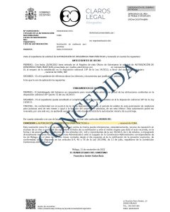 Con fecha 30/08/2022 en representación de nuestra clienta de nacionalidad colombiana se solicita autorización de[...]