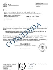 AUTORIZACIÓN DE RESIDENCIA RENOVADA PARA INVESTIGACIÓN NACIONAL Supuesto: TITULAR DE AUTORIZACIÓN DE RESIDENCIA PARA INVESTIGACIÓN[...]