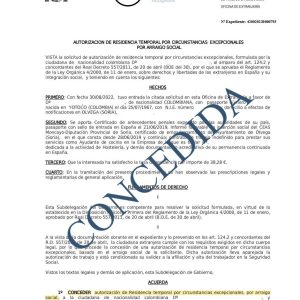CONCEDIDA AUTORIZACIÓN DE RESIDENCIA TEMPORAL POR CIRCUNSTANCIAS EXCEPCIONALES INICIAL por arraigo social CON CONTRATO
