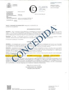 RECURSO DE REPOSICION ESTIMADO FRENTE A LA DENEGACION RESIDENCIA FAMILIAR DE LA UE DE HIJA[...]
