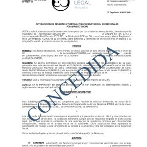 CONCEDIDA AUTORIZACIÓN DE RESIDENCIA TEMPORAL POR CIRCUNSTANCIAS EXCEPCIONALES INICIAL por arraigo social CON CONTRATO