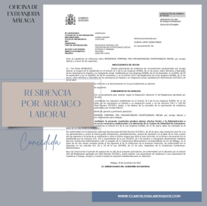 CONCEDIDA RESIDENCIA POR ARRAIGO LABORAL