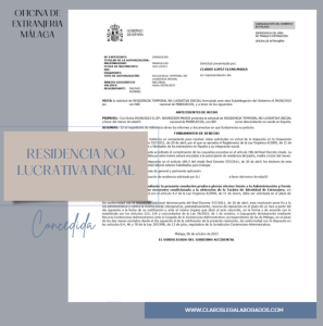 CONCEDIDA RESIDENCIA TEMPORAL NO LUCRATIVA INICIAL